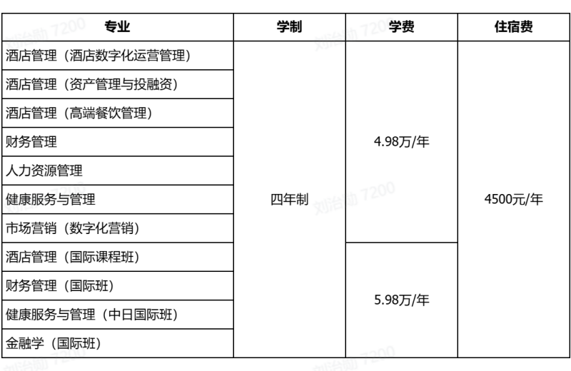 招生专业:酒店管理、财务管理、人力资源管理、市场营销、金融学、健康服务与管理